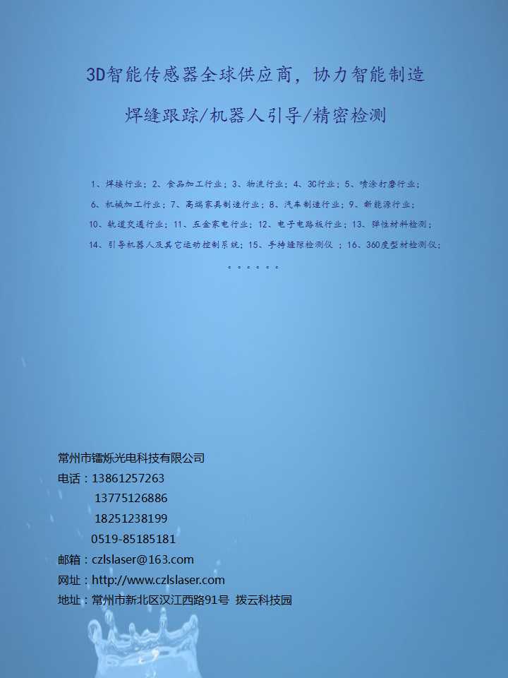 常州市鐳爍光電科技 地址:常州市新北區(qū)潘楊路28號聯(lián)東國際智慧谷 聯(lián)系人:晏經(jīng)理 手機(jī):13861257263 電話:0519-85185181 郵件:czlslaser@163.com